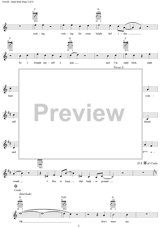 Digital Sheet Music for Right Back by Sublime, Brad Nowell scored for Easy Guitar/Vocal; id:289713