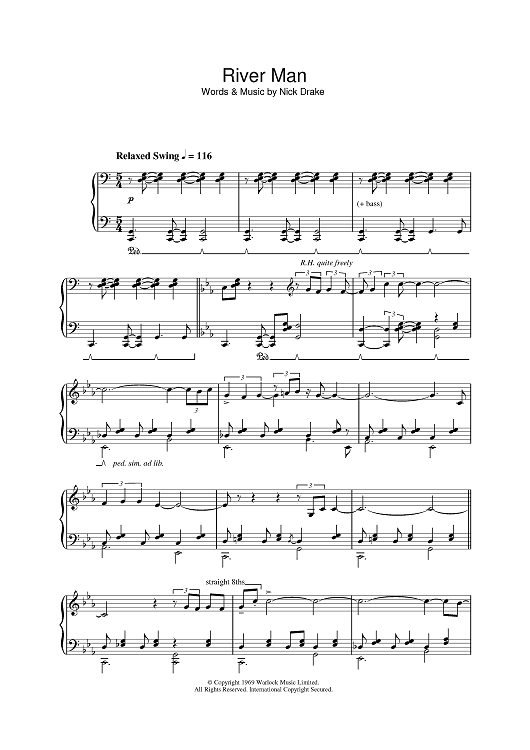Digital Sheet Music for River Man by Nick Drake scored for Piano; id:386365