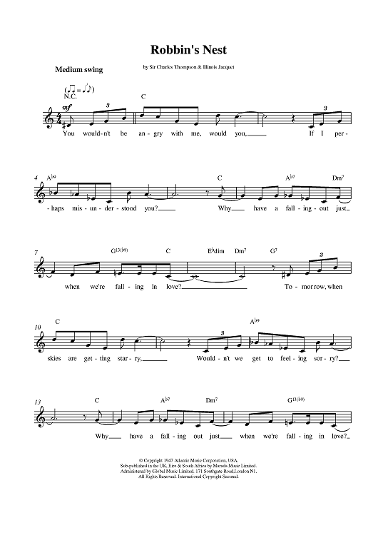 Digital Sheet Music for Robbin's Nest by Count Basie, Ella Fitzgerald, Illinois Jacquet, Thompson And Jacquet scored for Lead Sheet; id:380722