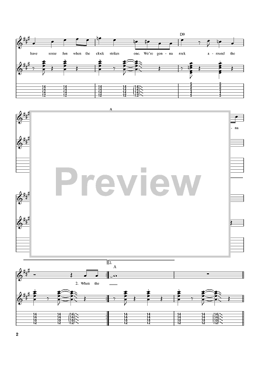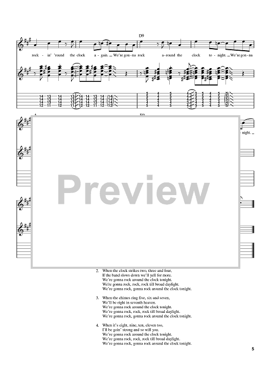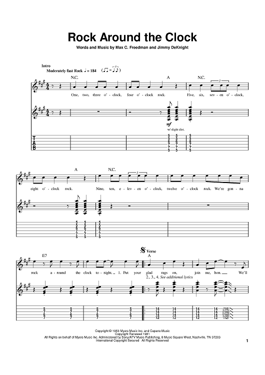 Digital Sheet Music for Rock Around The Clock by Max C. Freedman, Bill Haley & His Comets, Jimmy DeKnight scored for Guitar Tab; id:374217