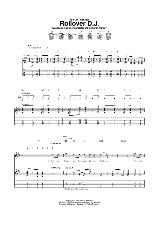 Digital Sheet Music for Rollover D.J. by Nic Cester, Jet, Cam Muncey scored for Guitar Tab; id:374959