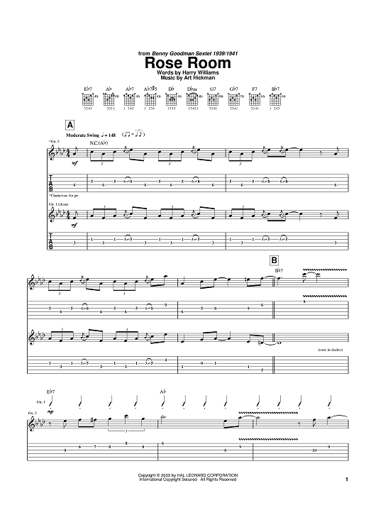 Digital Sheet Music for Rose Room by Art Hickman, Harry Williams, Charlie Christian scored for Guitar Tab; id:371574