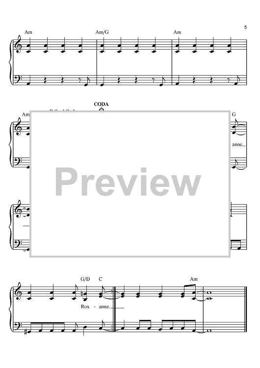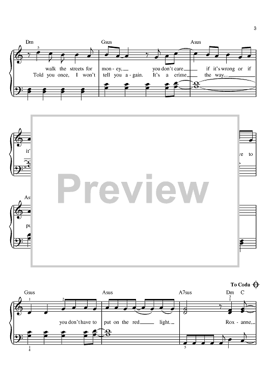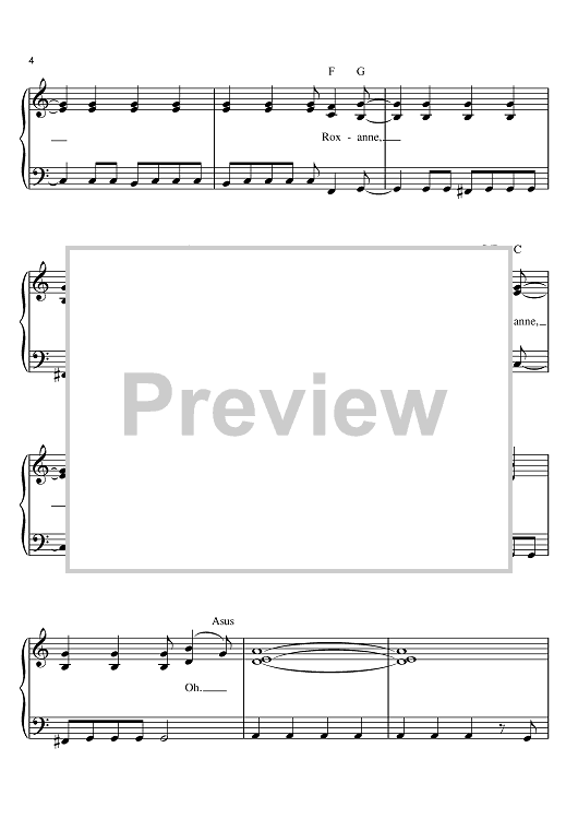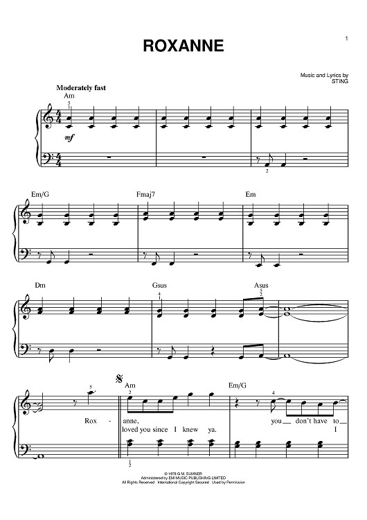 Digital Sheet Music for Roxanne by Sting, The Police scored for Easy Piano; id:380481