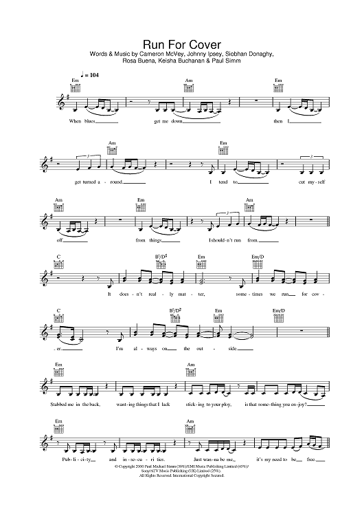Digital Sheet Music for Run For Cover by Sugababes scored for Lead Sheet; id:377421