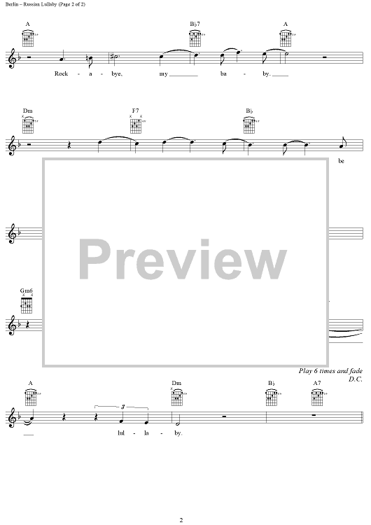 Digital Sheet Music for Russian Lullaby by Irving Berlin, Jerry Garcia scored for Easy Guitar/Vocal; id:291664