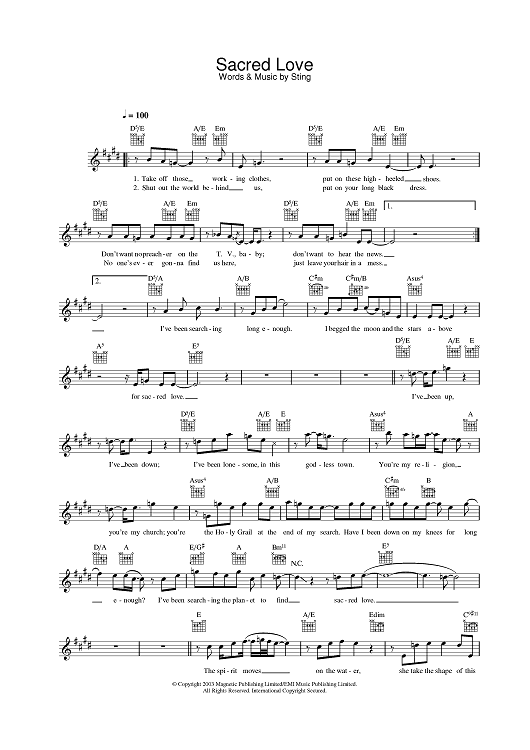 Digital Sheet Music for Sacred Love by Sting scored for Lead Sheet; id:378188