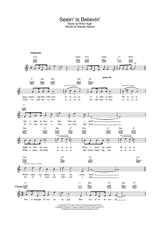 Digital Sheet Music for Seein' Is Believin' by Lew Stone scored for Lead Sheet; id:375678
