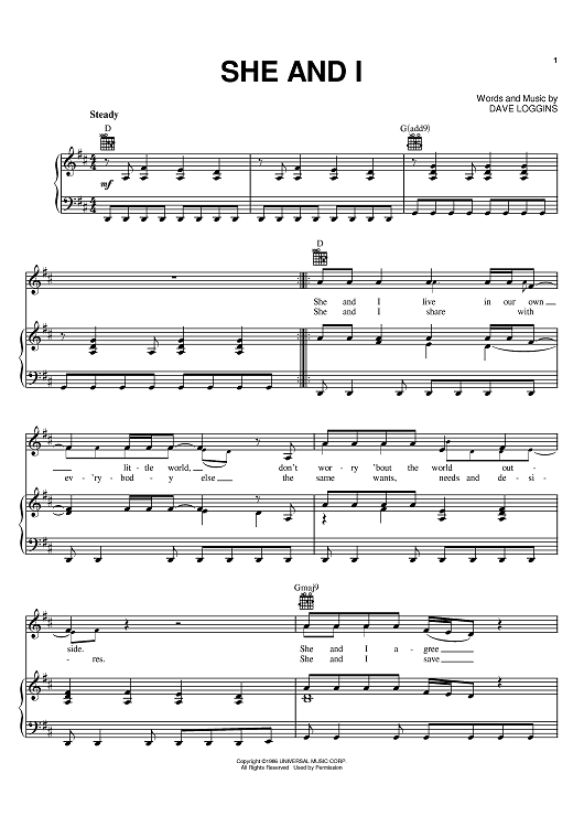 Digital Sheet Music for She And I by Dave Loggins, Alabama scored for Piano/Vocal/Chords; id:389762
