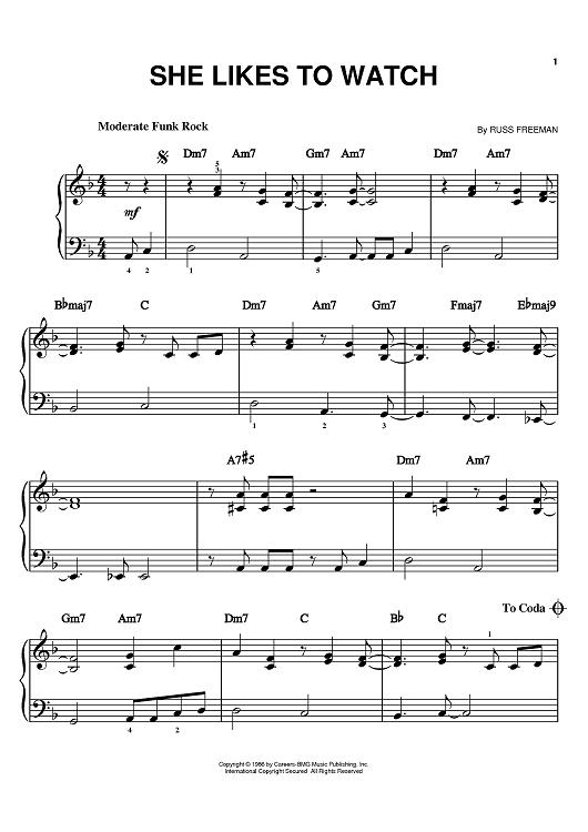 Digital Sheet Music for She Likes To Watch by Russ Freeman, The Rippingtons scored for Easy Piano; id:371956