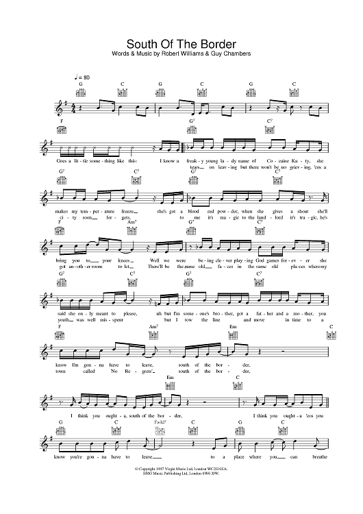 Digital Sheet Music for South Of The Border by Robbie Williams scored for Lead Sheet; id:376602