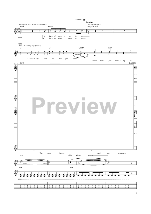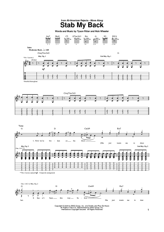 Digital Sheet Music for Stab My Back by Tyson Ritter, Nick Wheeler scored for Guitar Tab; id:388177
