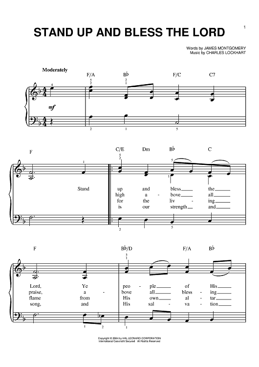 Digital Sheet Music for Stand Up And Bless The Lord by James Montgomery, Charles Lockhart scored for Easy Piano; id:381108