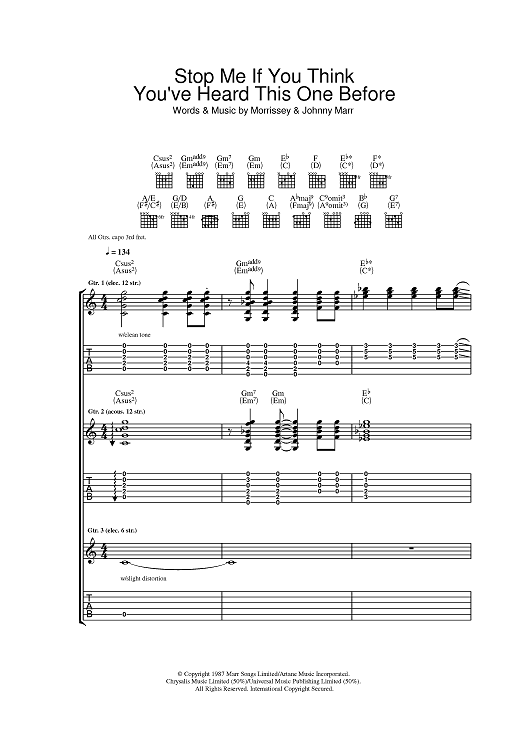 Digital Sheet Music for Stop Me If You Think You've Heard This One Before by Johnny Marr, The Smiths, Morrissey scored for Guitar Tab; id:386994