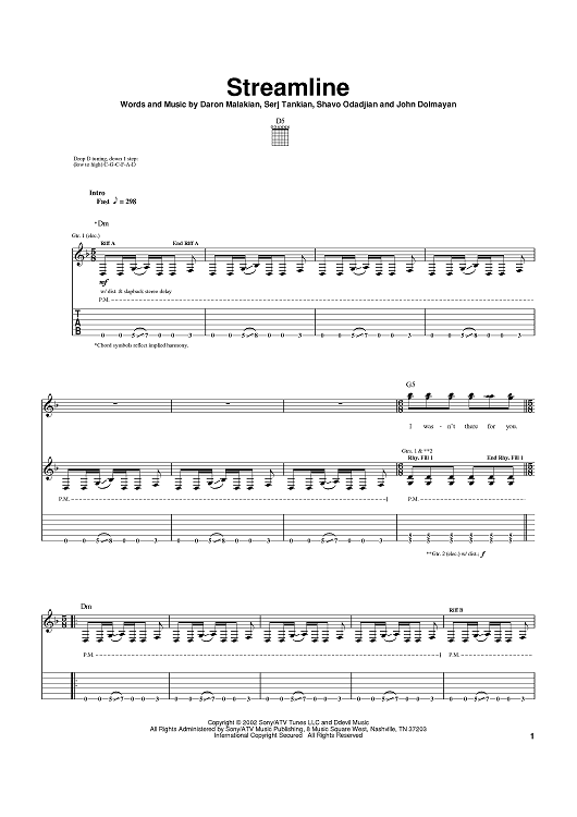 Digital Sheet Music for Streamline by Daron Malakian, Shavo Odadjian, System Of A Down, Serj Tankian scored for Guitar Tab; id:370652