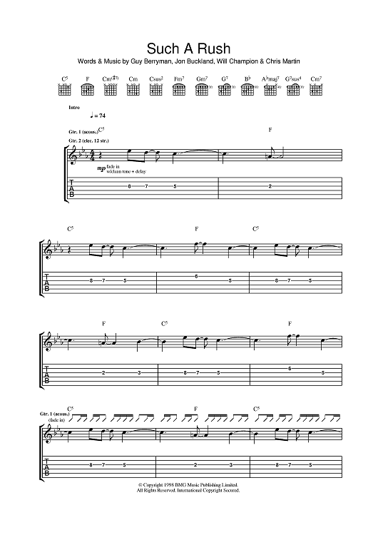 Digital Sheet Music for Such A Rush by Chris Martin, Coldplay, Jonny Buckland, Guy Berryman scored for Guitar Tab; id:401560