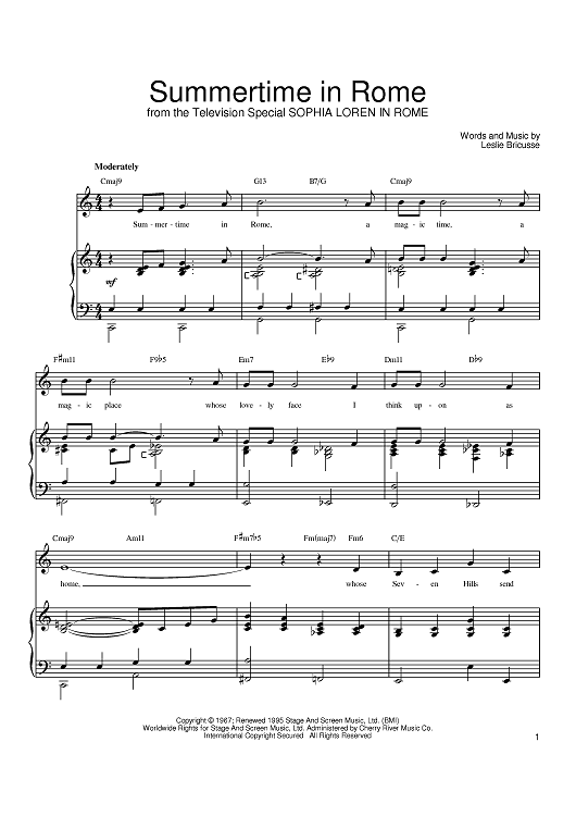 "Summertime In Rome" Sheet Music by Leslie Bricusse