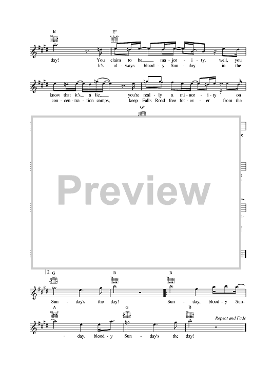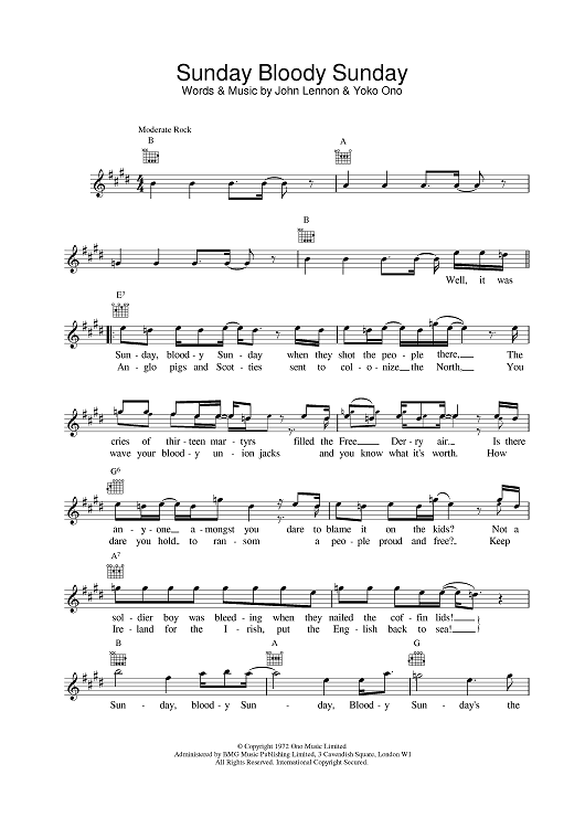 Digital Sheet Music for Sunday Bloody Sunday by John Lennon, Yoko Ono scored for Lead Sheet; id:378637