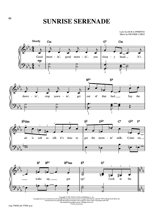 Digital Sheet Music for Sunrise Serenade by Glenn Miller, Jack Lawrence, Frankie Carle scored for Easy Piano; id:367547