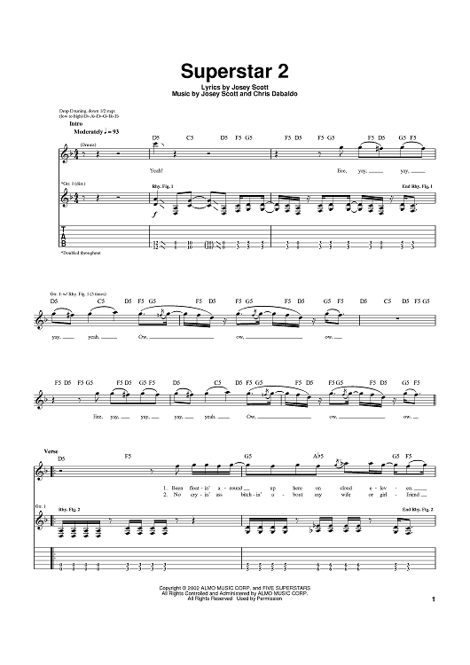Digital Sheet Music for Superstar 2 by Saliva, Chris Dabaldo, Josey Scott scored for Guitar Tab; id:370707