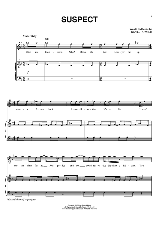 Digital Sheet Music for Suspect by Daniel Robert Powter scored for Piano/Vocal/Chords; id:393052