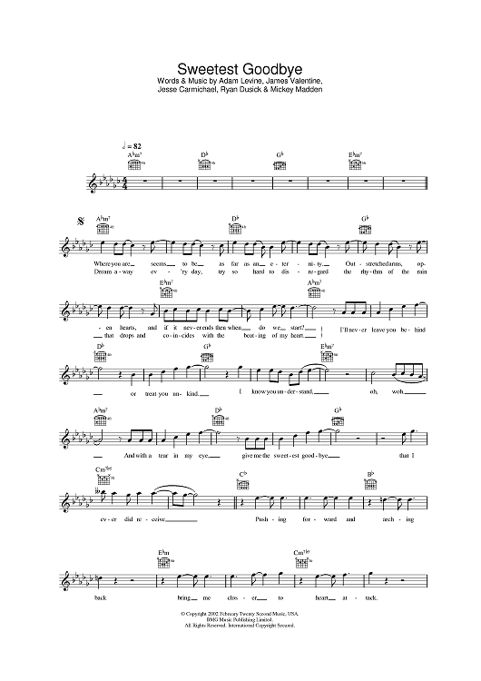 "Sweetest Goodbye" Sheet Music by Maroon 5