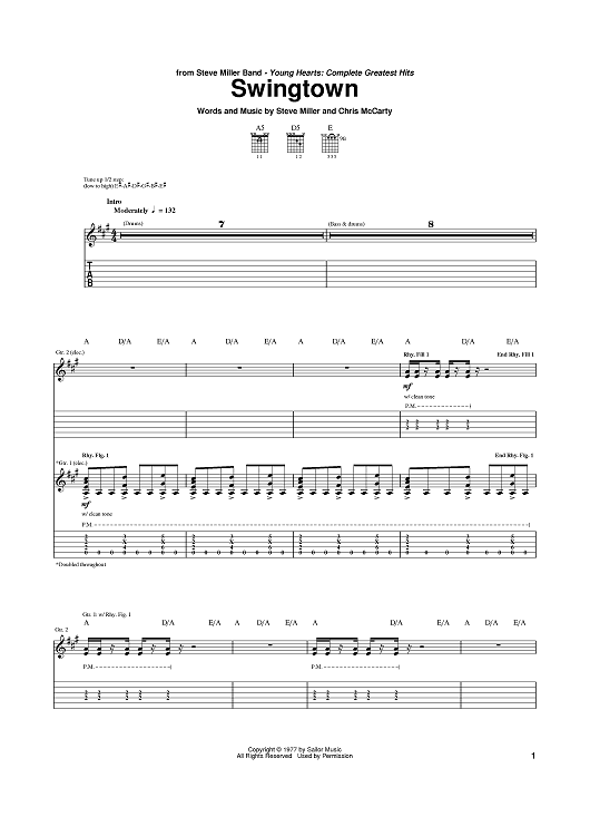 Digital Sheet Music for Swingtown by Steve Miller, Chris McCarty, Steve Miller Band scored for Guitar Tab; id:386233