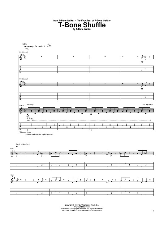 "T-Bone Shuffle" Sheet Music by T-Bone Walker