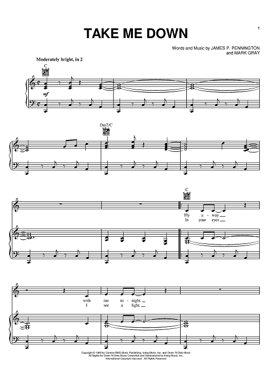 Digital Sheet Music for Take Me Down by Mark Gray, James P. Pennington, Alabama scored for Piano/Vocal/Chords; id:389765
