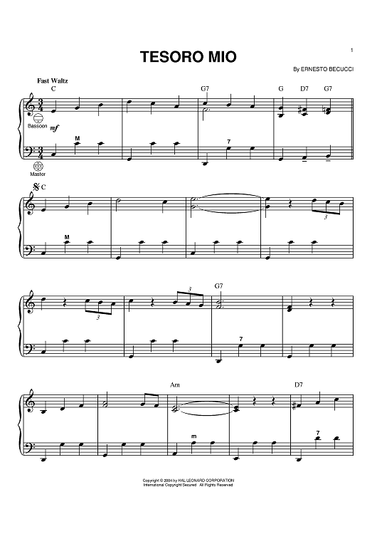 "Tesoro Mio" Sheet Music by Ernesto Becucci