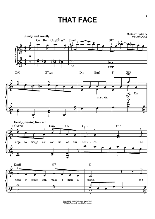 Digital Sheet Music for That Face by Mel Brooks scored for Easy Piano; id:372596