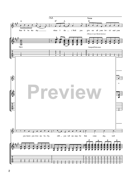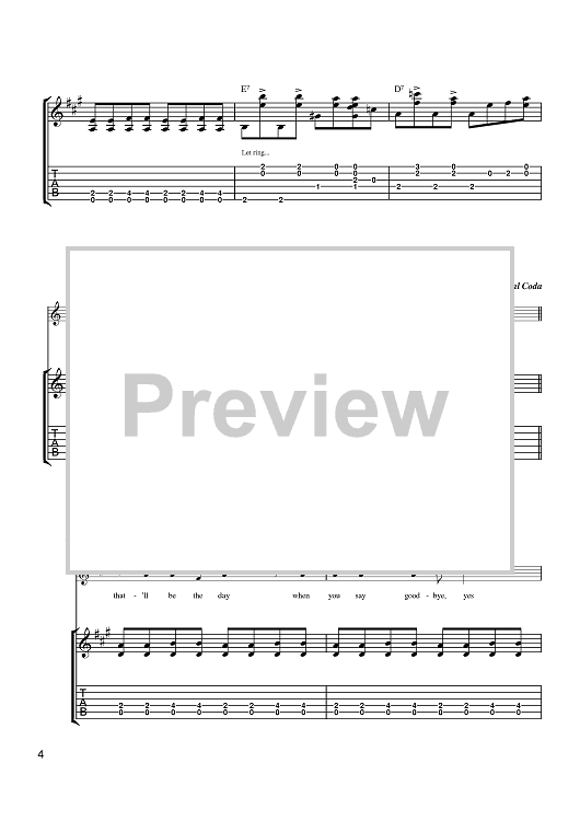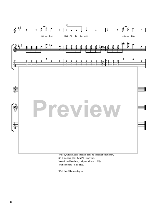 Digital Sheet Music for That'll Be The Day by Norman Petty, Buddy Holly, Jerry Allison scored for Guitar Tab; id:401394