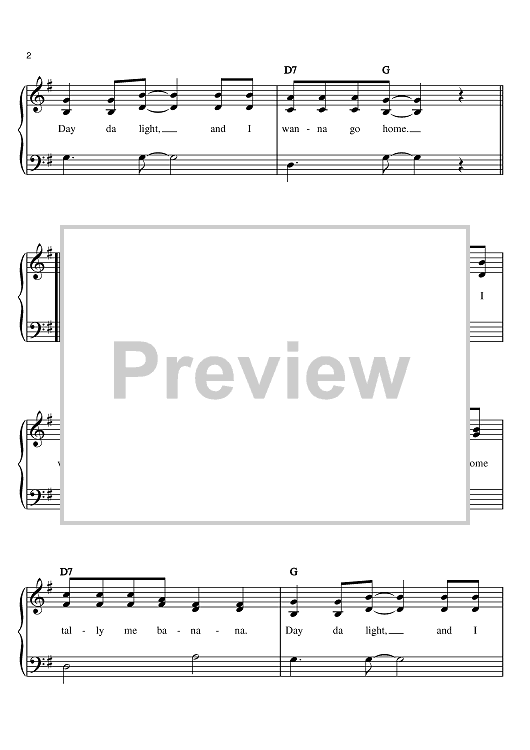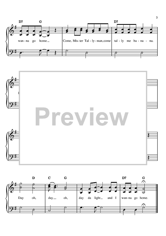 Digital Sheet Music for The Banana Boat Song by scored for Easy Piano; id:373820