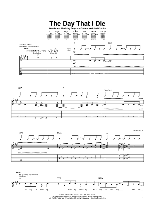 Digital Sheet Music for The Day That I Die by Benji Madden, Joel Madden, Good Charlotte scored for Guitar Tab; id:371010