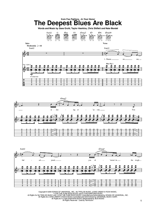 Digital Sheet Music for The Deepest Blues Are Black by Foo Fighters, Dave Grohl, Taylor Hawkins, Nate Mendel, Chris Shiflett scored for Guitar Tab; id:386757