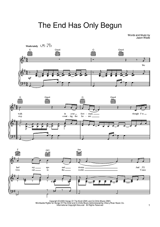 Digital Sheet Music for The End Has Only Begun by Jason Wade, Lifehouse scored for Piano/Vocal/Chords; id:389892
