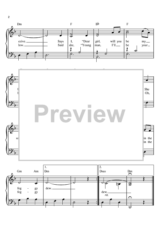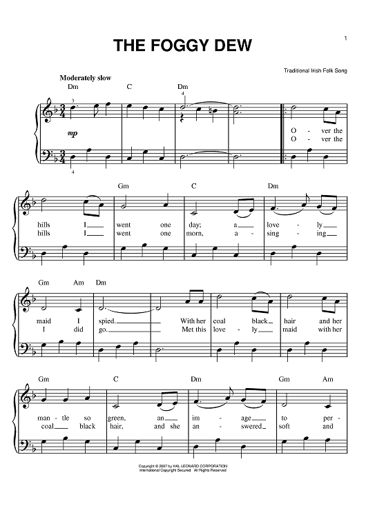 Digital Sheet Music for The Foggy Dew by scored for Easy Piano; id:397292