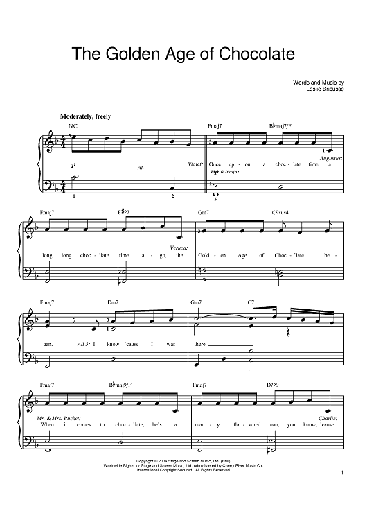 Digital Sheet Music for The Golden Age Of Chocolate by Leslie Bricusse, Willy Wonka scored for Easy Piano; id:389086