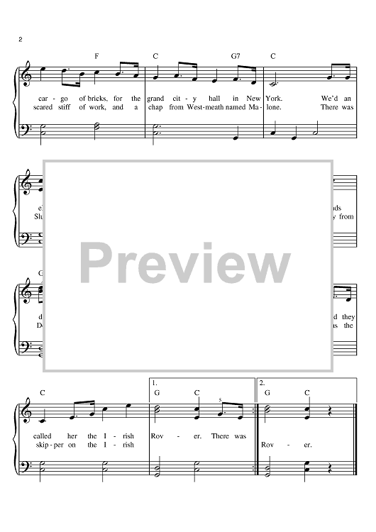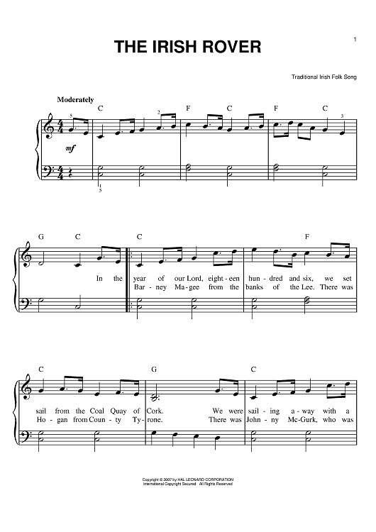 Digital Sheet Music for The Irish Rover by scored for Easy Piano; id:397283