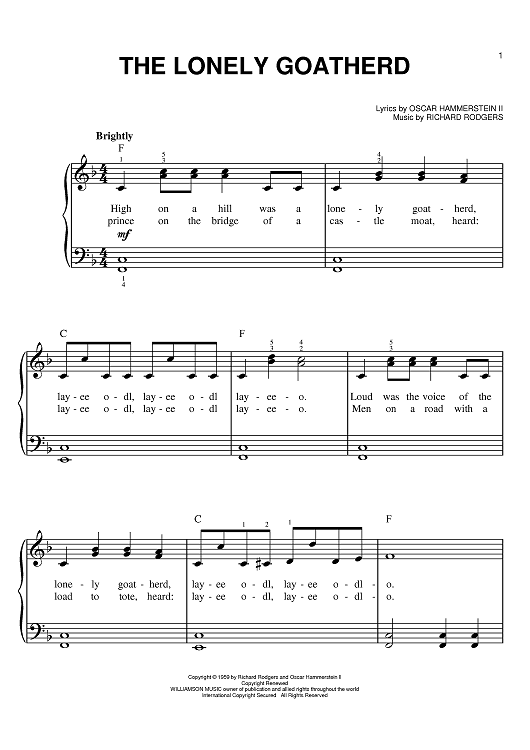 Digital Sheet Music for The Lonely Goatherd by Richard Rodgers, Oscar Hammerstein II scored for Easy Piano; id:371867