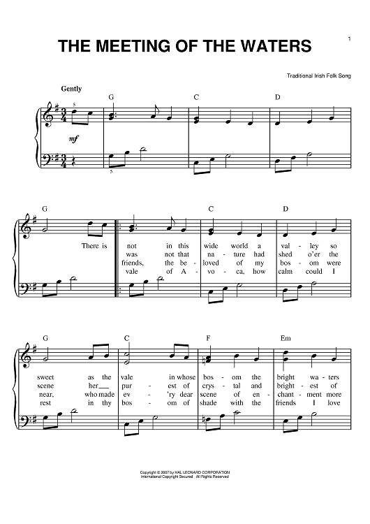 Digital Sheet Music for The Meeting Of The Waters by scored for Easy Piano; id:397297