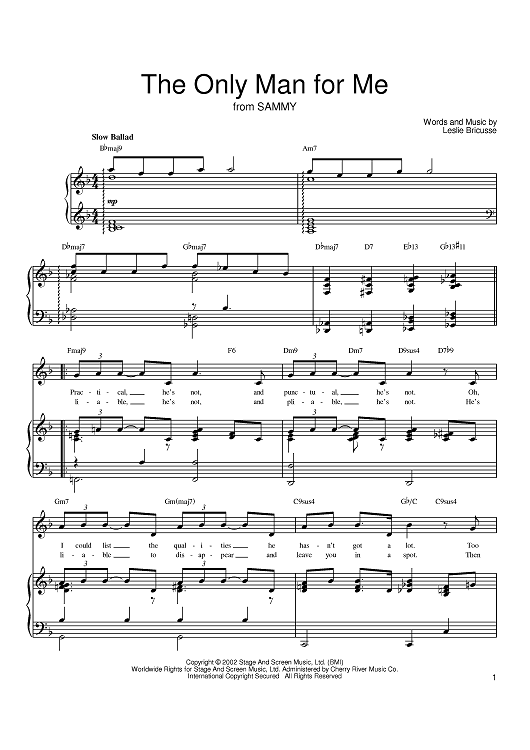 Digital Sheet Music for The Only Man For Me by Leslie Bricusse scored for Piano/Vocal/Chords; id:393667