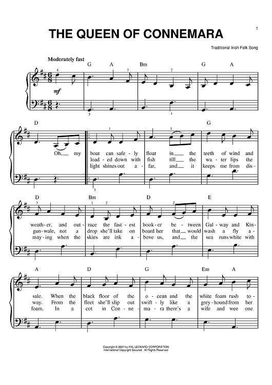 Digital Sheet Music for The Queen Of Connemara by scored for Easy Piano; id:397276