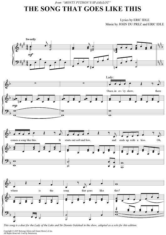 Digital Sheet Music for The Song That Goes Like This by Eric Idle, John Du Prez scored for Piano/Vocal; id:387605