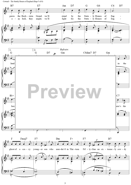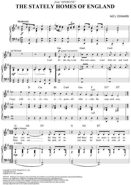 Digital Sheet Music for The Stately Homes of England by Noel Coward scored for Piano/Vocal/Chords; id:356596