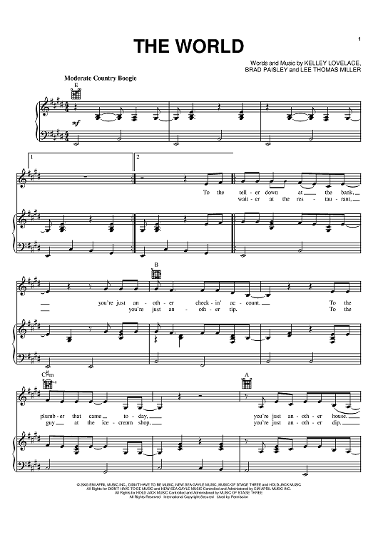 Digital Sheet Music for The World by Kelley Lovelace, Brad Paisley scored for Piano/Vocal/Chords; id:390220