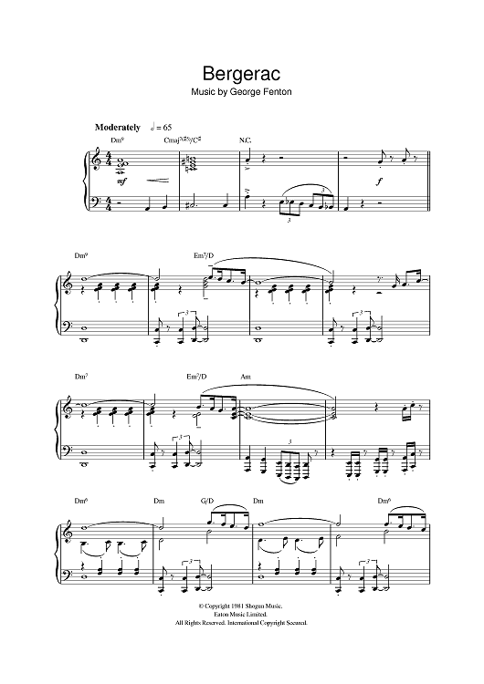 Digital Sheet Music for Theme from Bergerac by George Fenton scored for Piano; id:384726