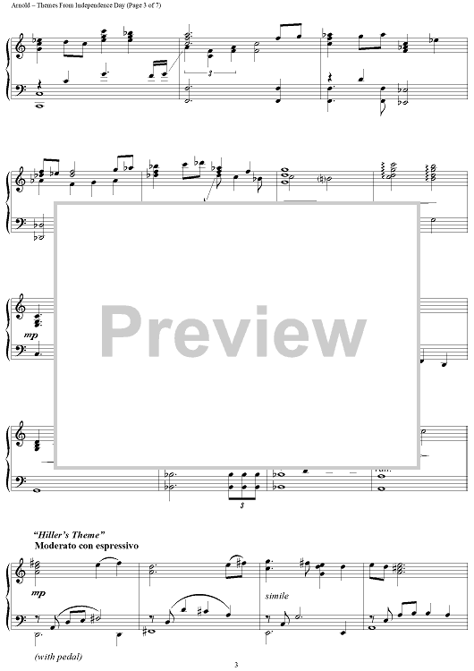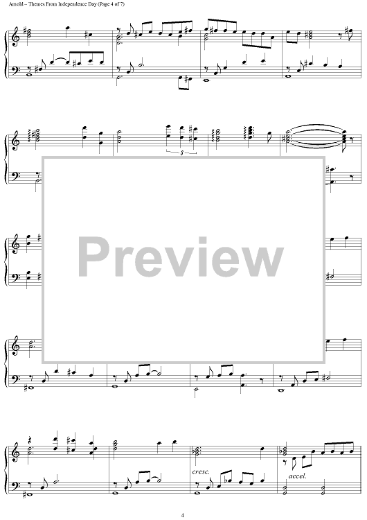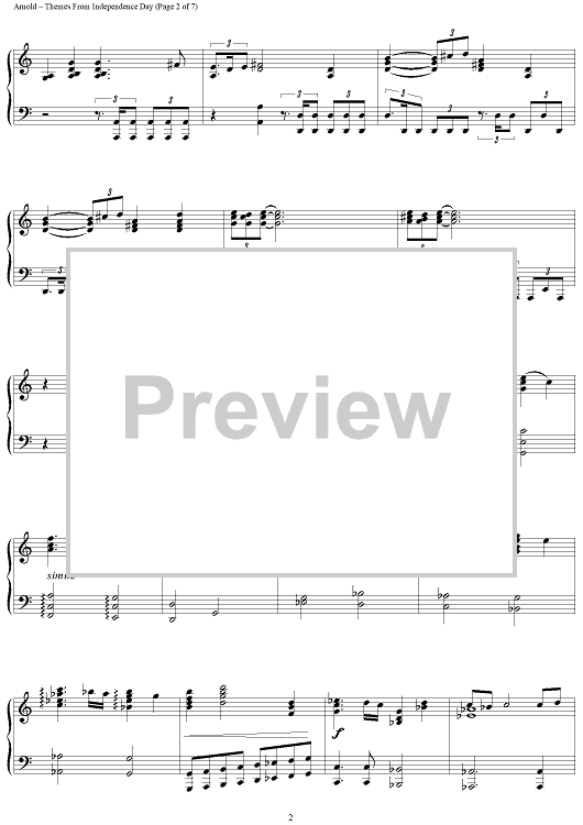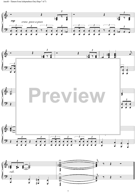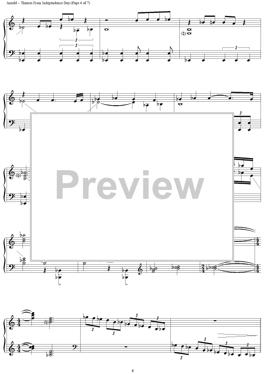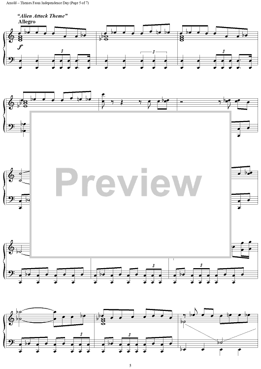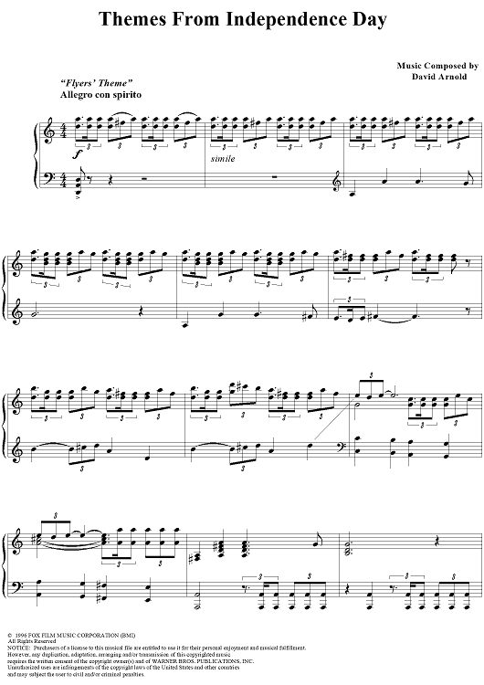 Digital Sheet Music for Themes From Independence Day by David Arnold scored for Piano Solo; id:111376