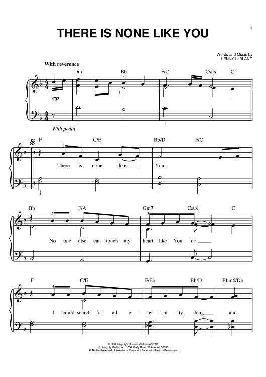 Digital Sheet Music for There Is None Like You by Lenny LeBlanc scored for Easy Piano; id:374671