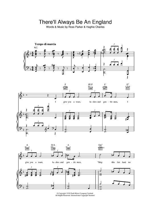 Digital Sheet Music for There'll Always Be An England by Vera Lynn, Hughie Charles, Ross Parker scored for Piano/Vocal/Chords; id:393226
