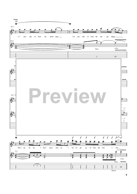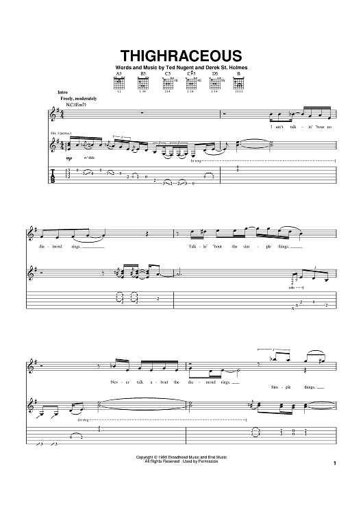 Digital Sheet Music for Thighraceous by Ted Nugent, Derek St. Holmes scored for Guitar Tab; id:374138